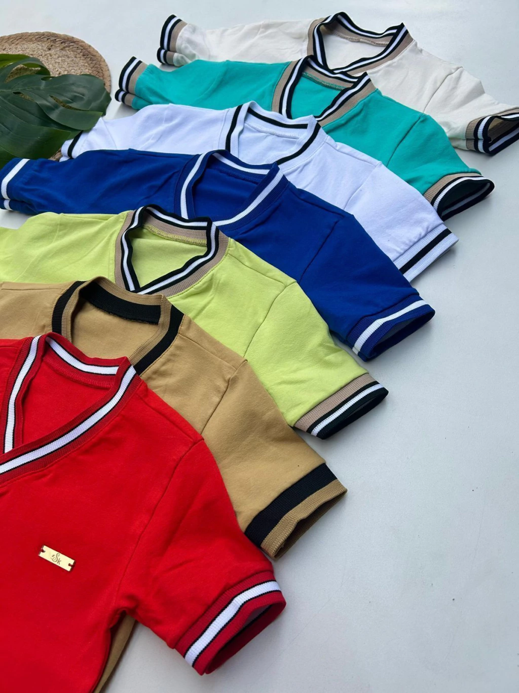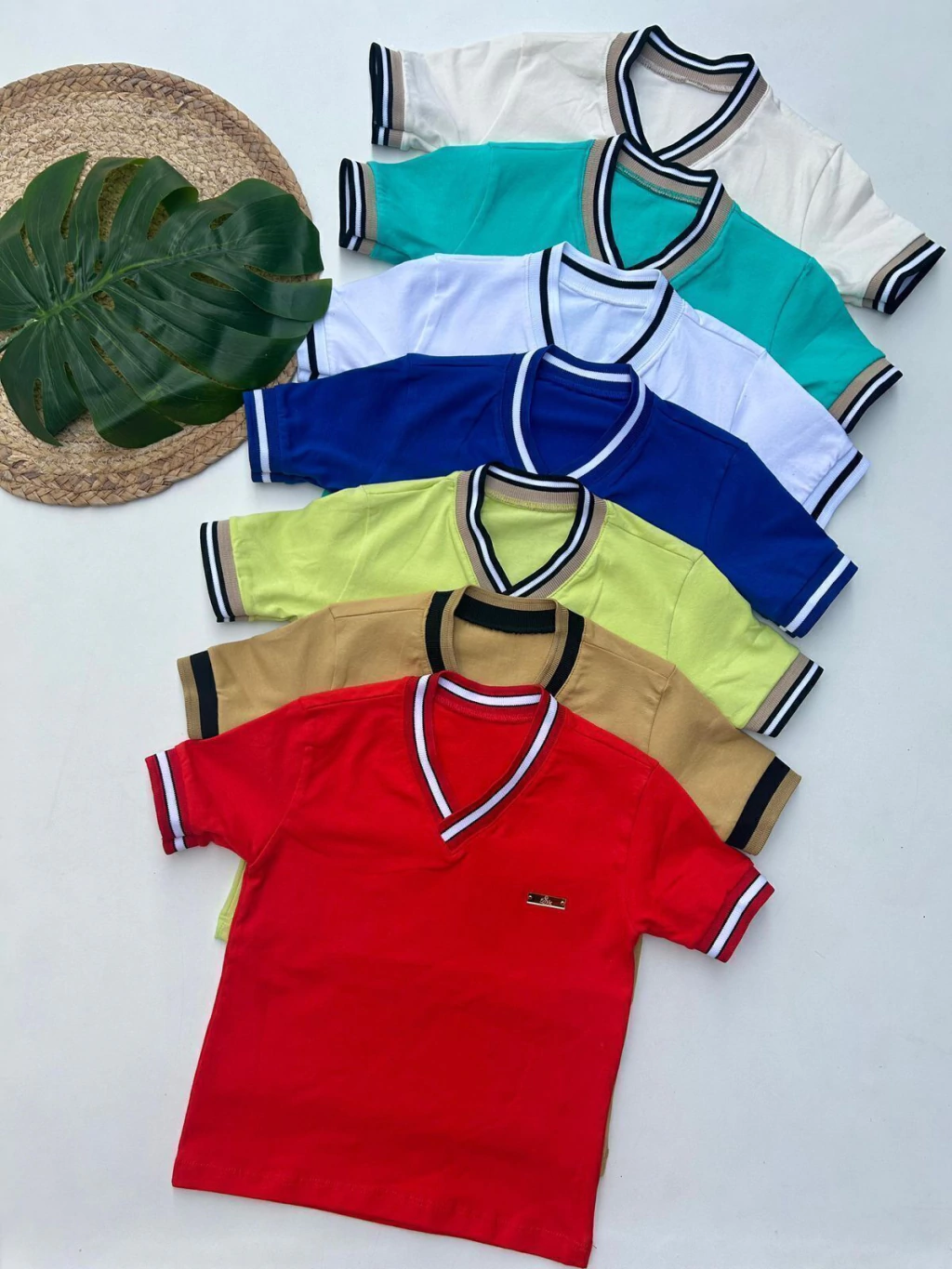 Camiseta masculina estilo polo moderna, com gola e punhos colorido que dão um toque esportivo e cheio de personalidade. Confeccionada em tecido macio e confortável, é perfeita para o dia a dia dos meninos que gostam de se vestir bem. Disponível em cores vibrantes e versáteis, ideal para compor looks estilosos e fresquinhos!