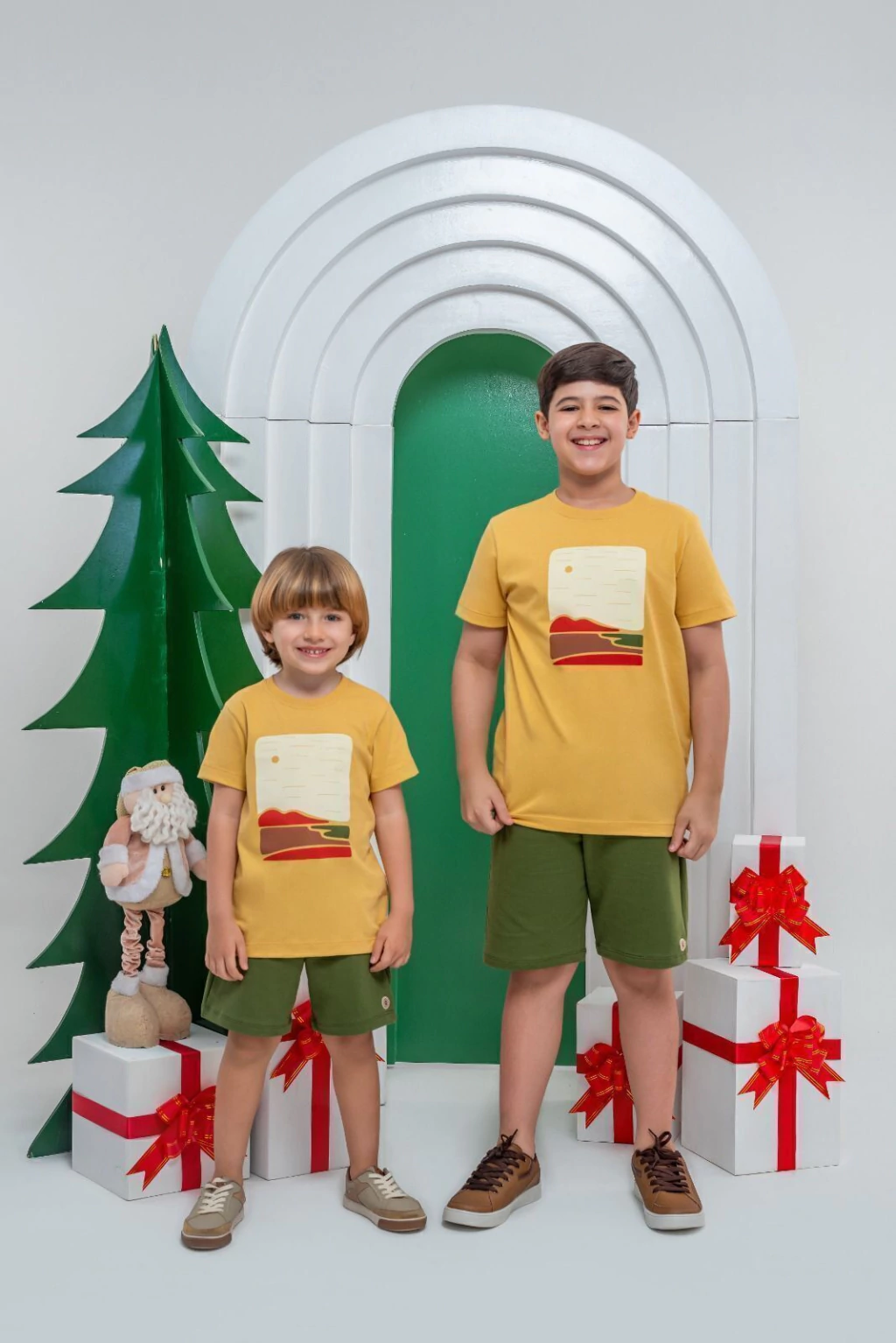 O conjunto Lucca é sinônimo de conforto e estilo para os meninos! A blusa em algodão macio garante leveza e respirabilidade, enquanto o short em moletom proporciona liberdade nos movimentos. Um look versátil e moderno, ideal para o dia a dia ou momentos especiais.