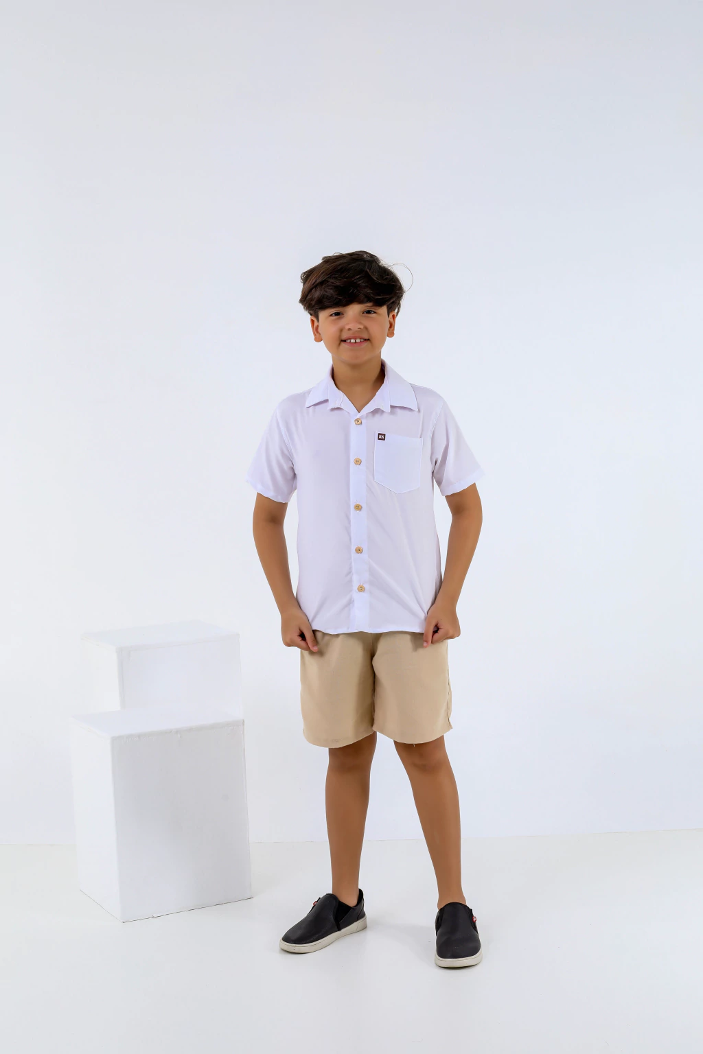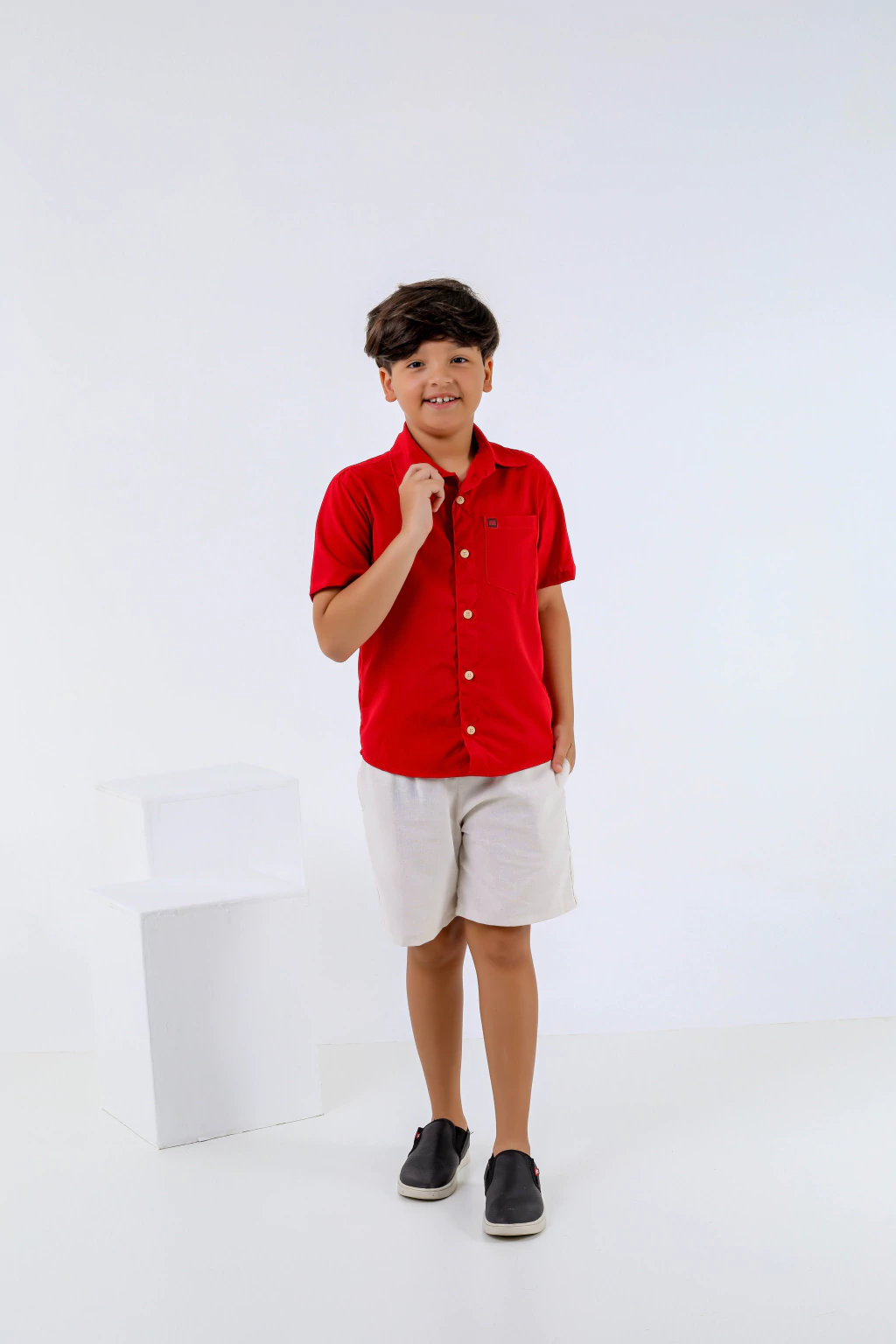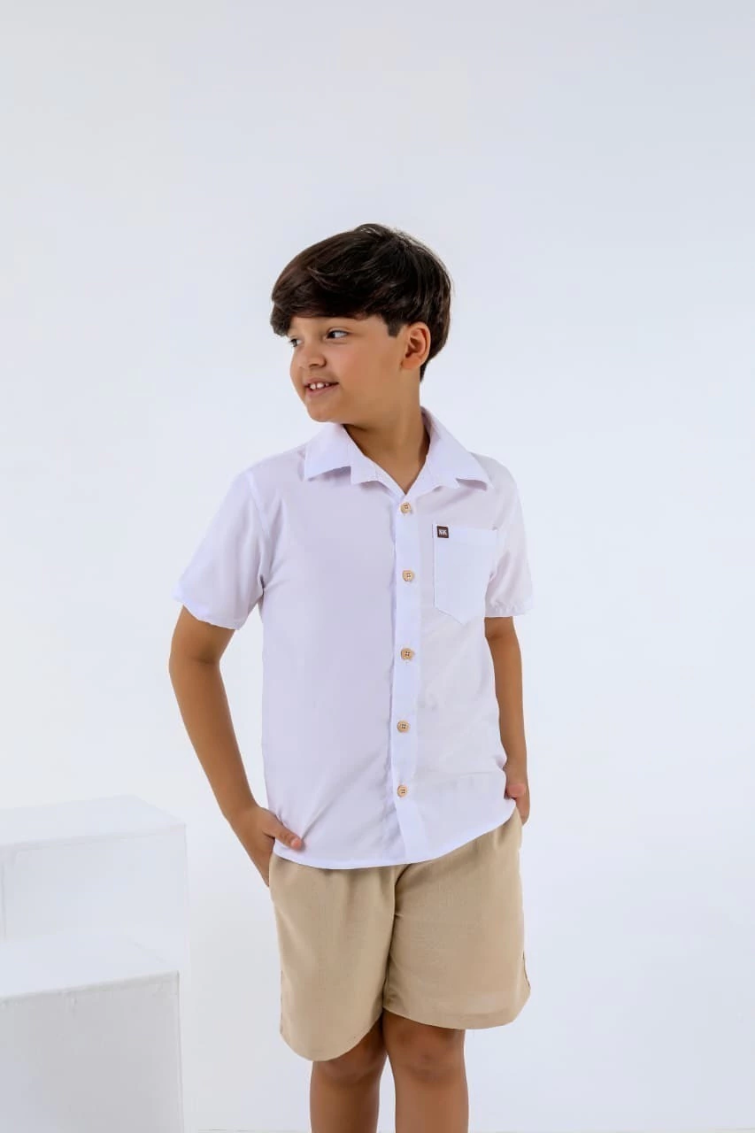 O Conjunto Otávio traz elegância e conforto para o dia a dia dos pequenos. A camisa é feita em crepe microfibra, leve e macia, com botões delicados e caimento impecável. O short em linho completa o look com charme e sofisticação, garantindo frescor e liberdade para brincar. Um conjunto versátil, perfeito para passeios, eventos e momentos especiais.