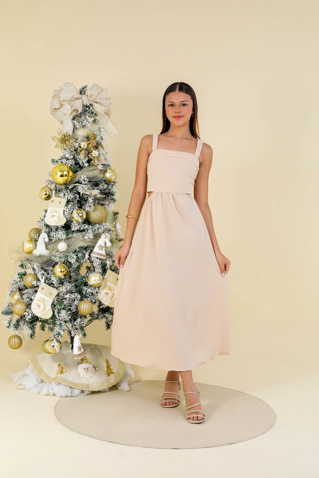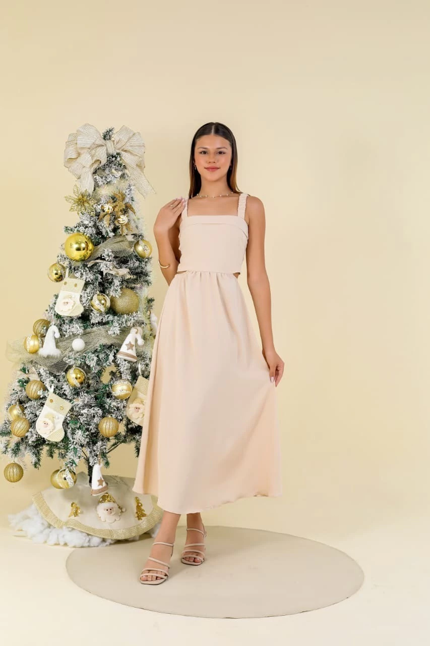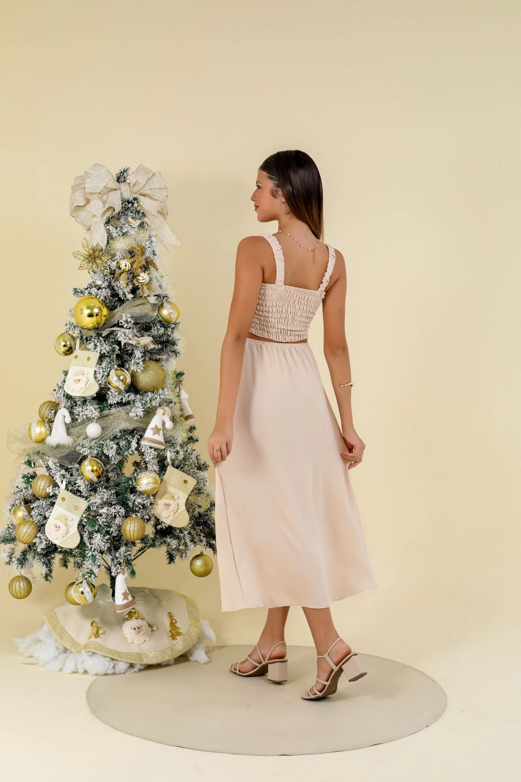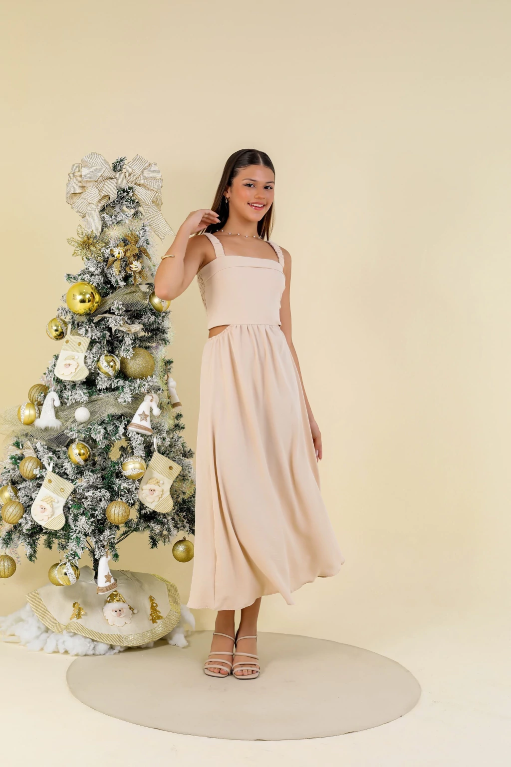 Combine com sandálias delicadas e acessórios dourados para um look elegante e atemporal.